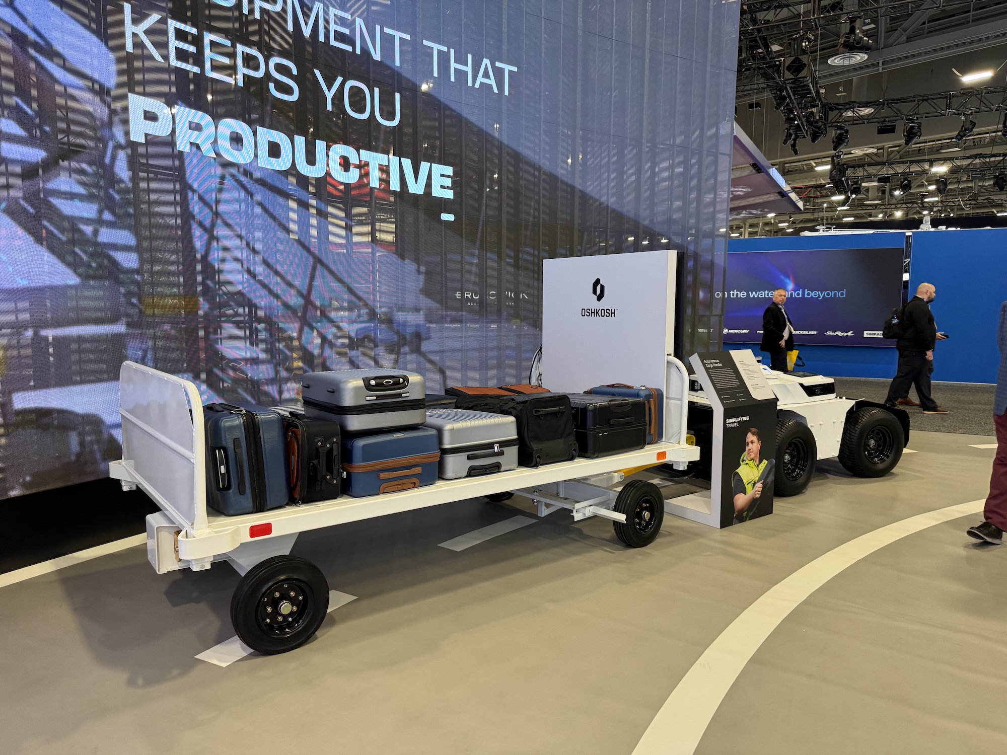 First of all, the smallest of the vehicles: a luggage trolley tractor for airports. This cute robot not only pulls the trailers to the aircraft electrically, but also completely autonomously. The only thing it can’t do yet is load the cargo hold.
