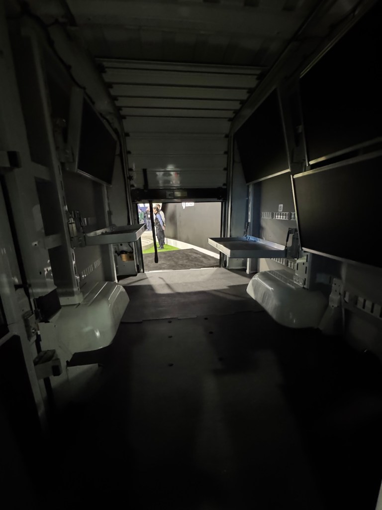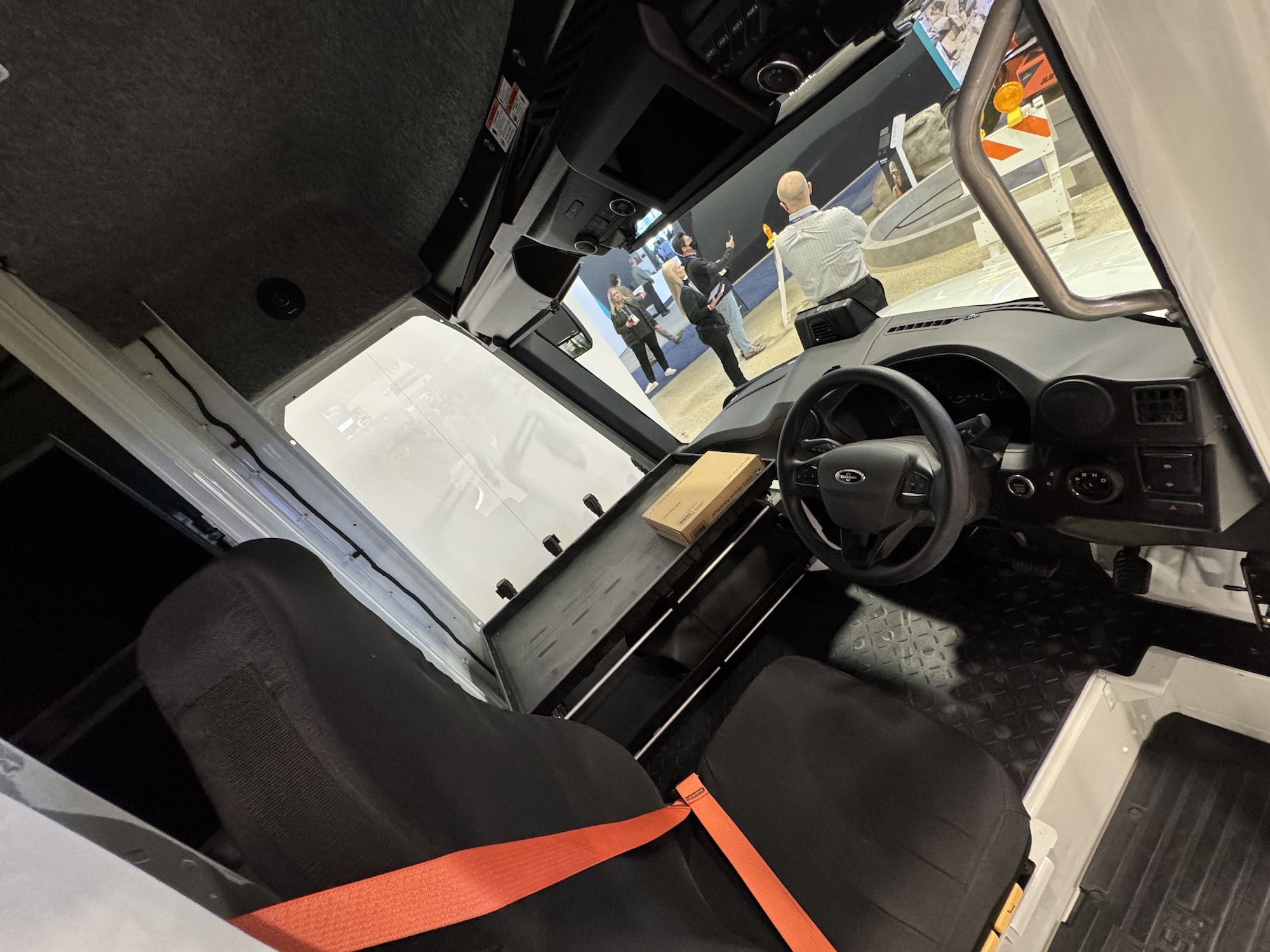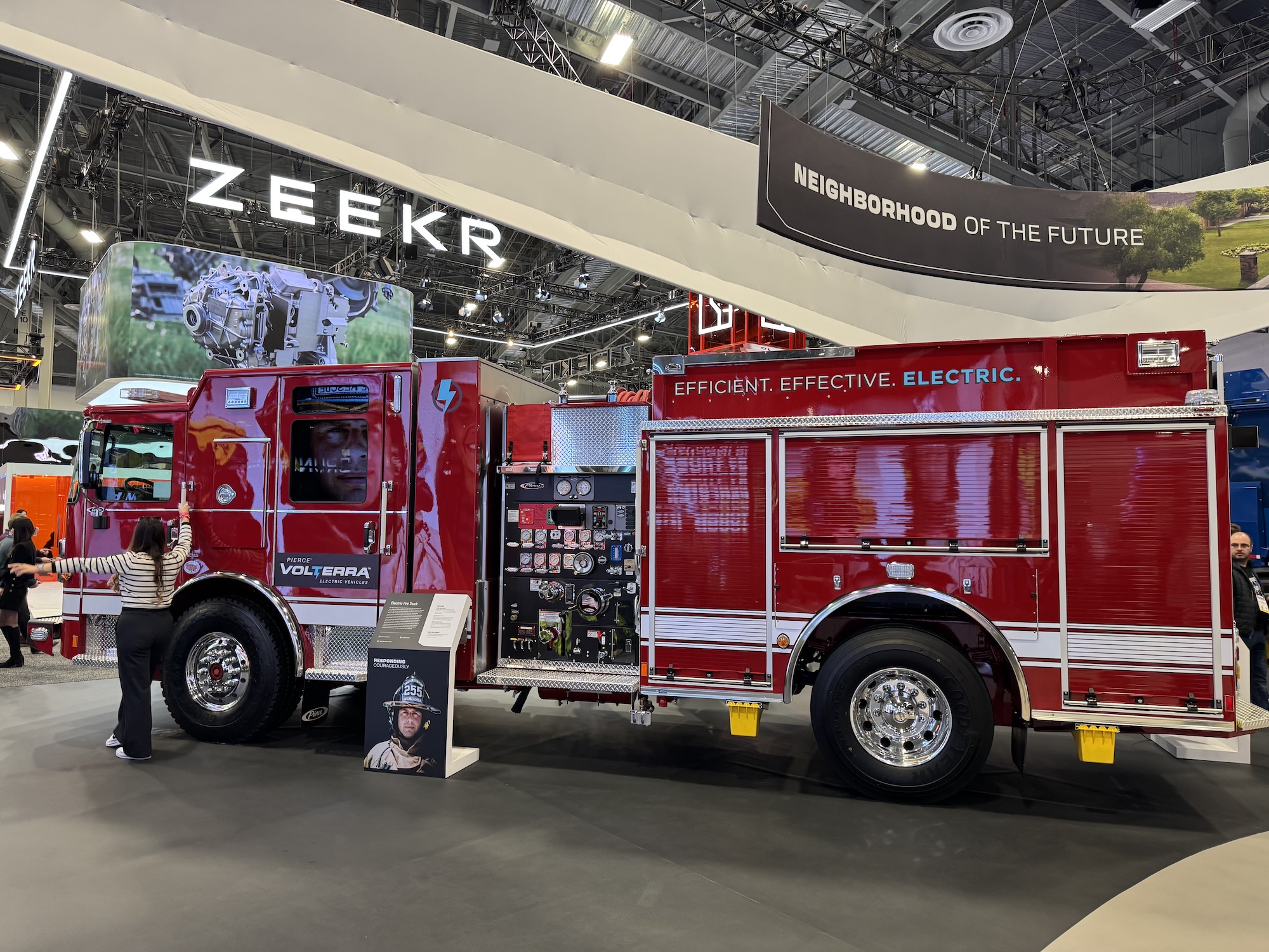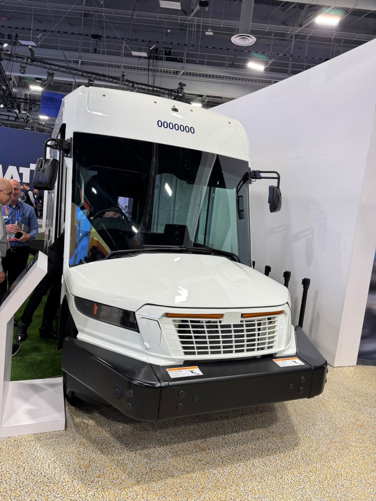 The components required for electrification, such as a gearbox – which is not usually found in electric cars – and the battery packs from Proterra were also on display.