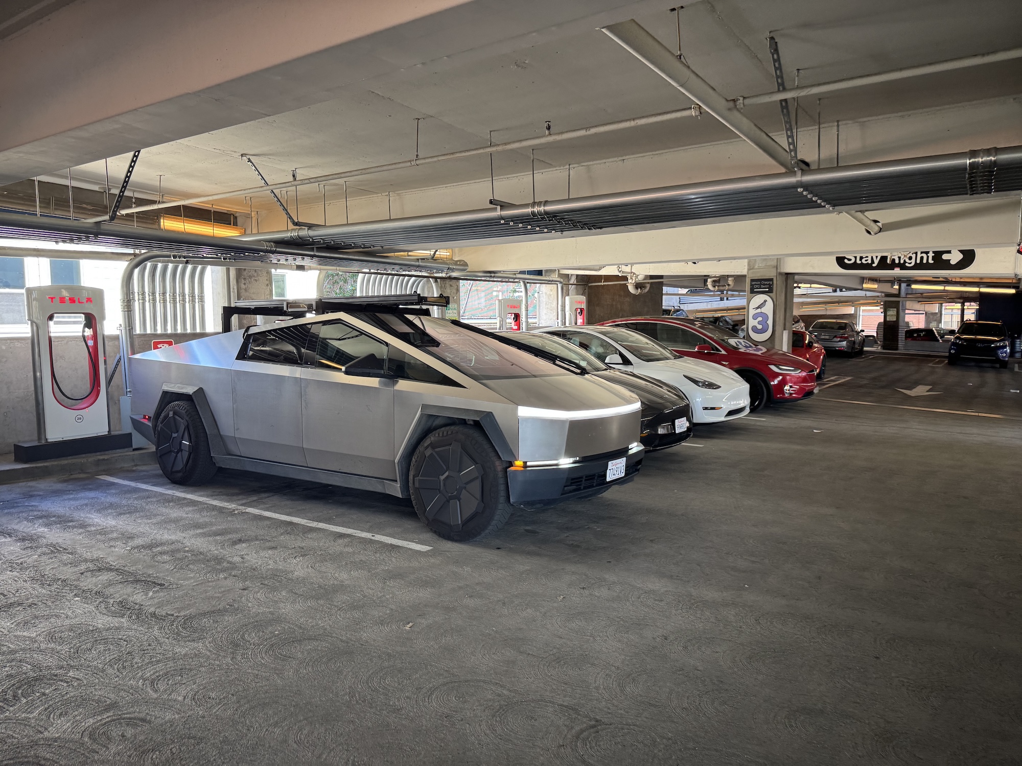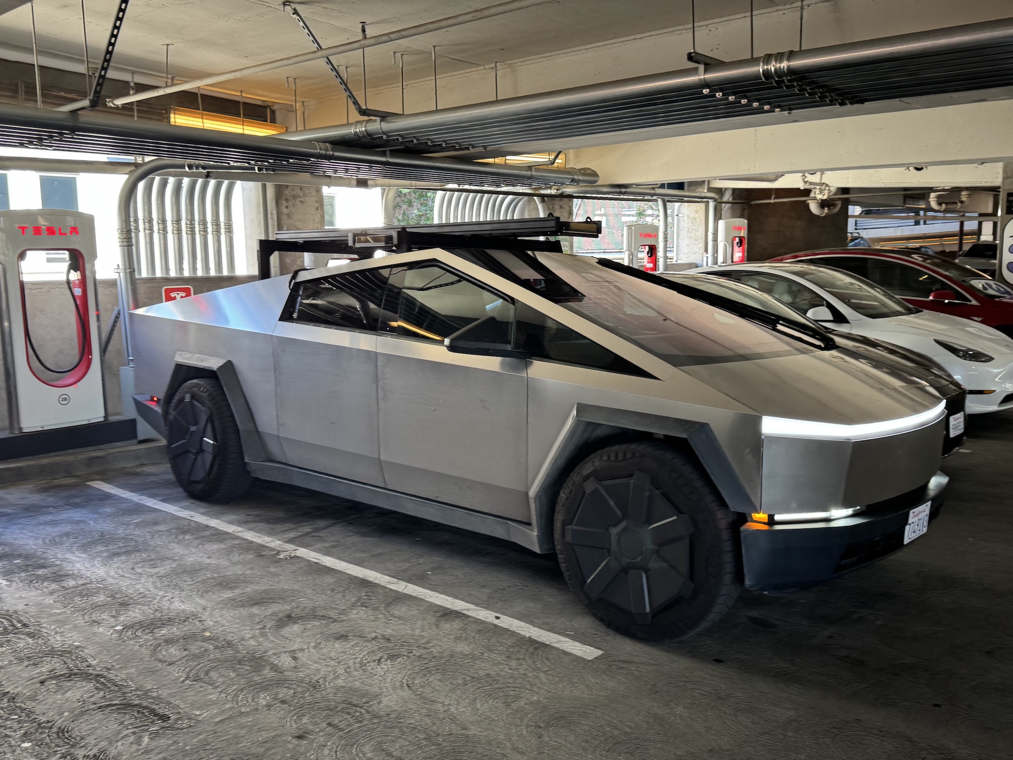 I just saw this Cybertruck with lidar superstructure for ground truth testing at the Bryant Street garage in Palo Alto during Supercharging. In the past, I have repeatedly seen other Tesla models with such superstructures.