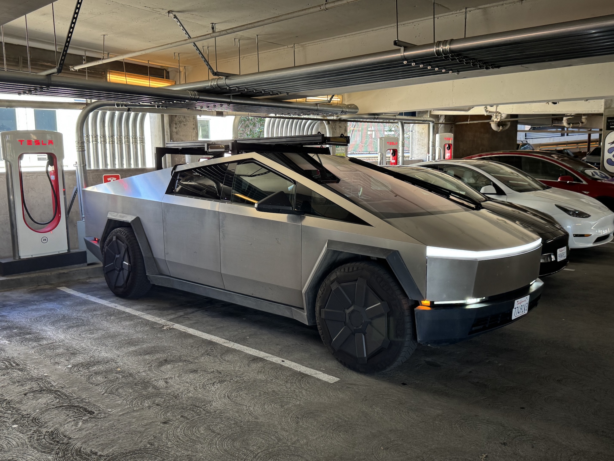 I just saw this Cybertruck with lidar superstructure for ground truth testing at the Bryant Street garage in Palo Alto during Supercharging. In the past, I have repeatedly seen other Tesla models with such superstructures.