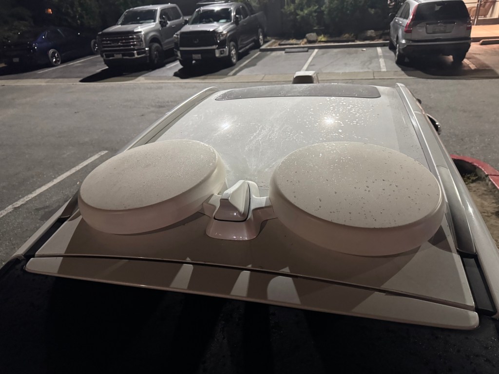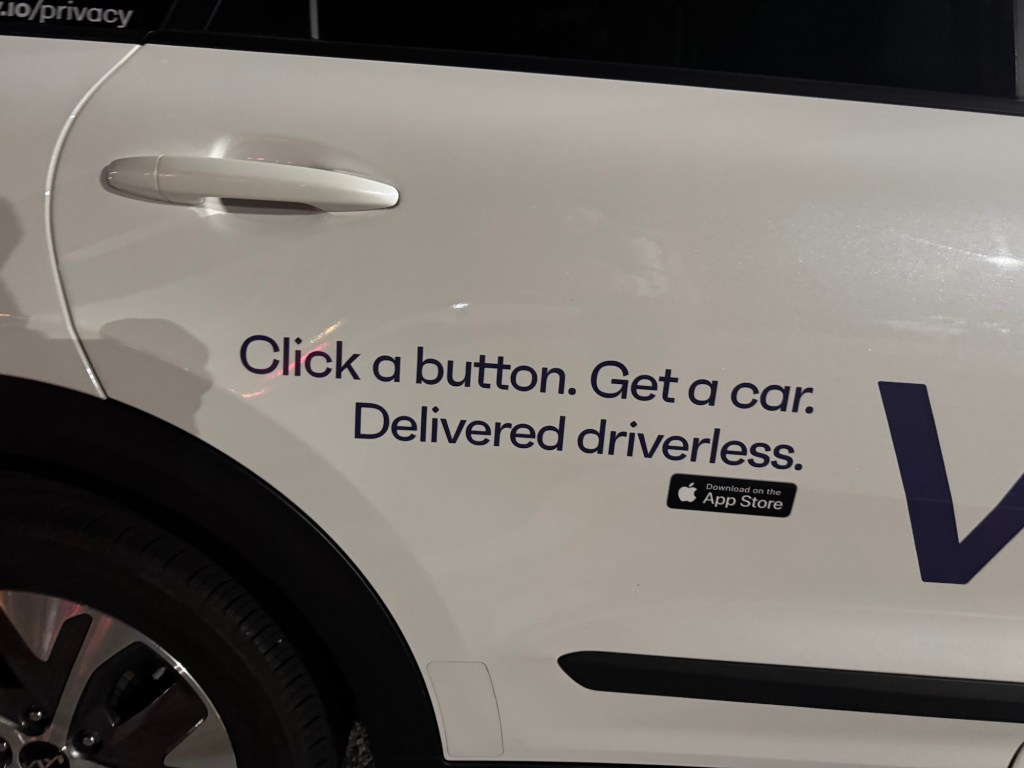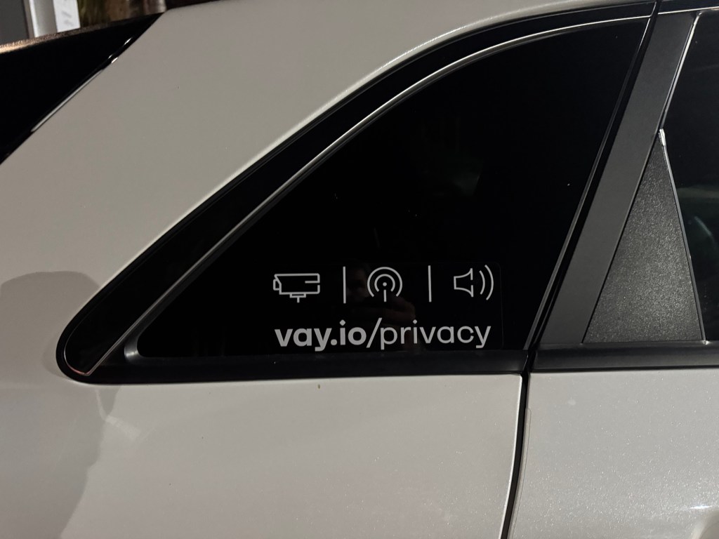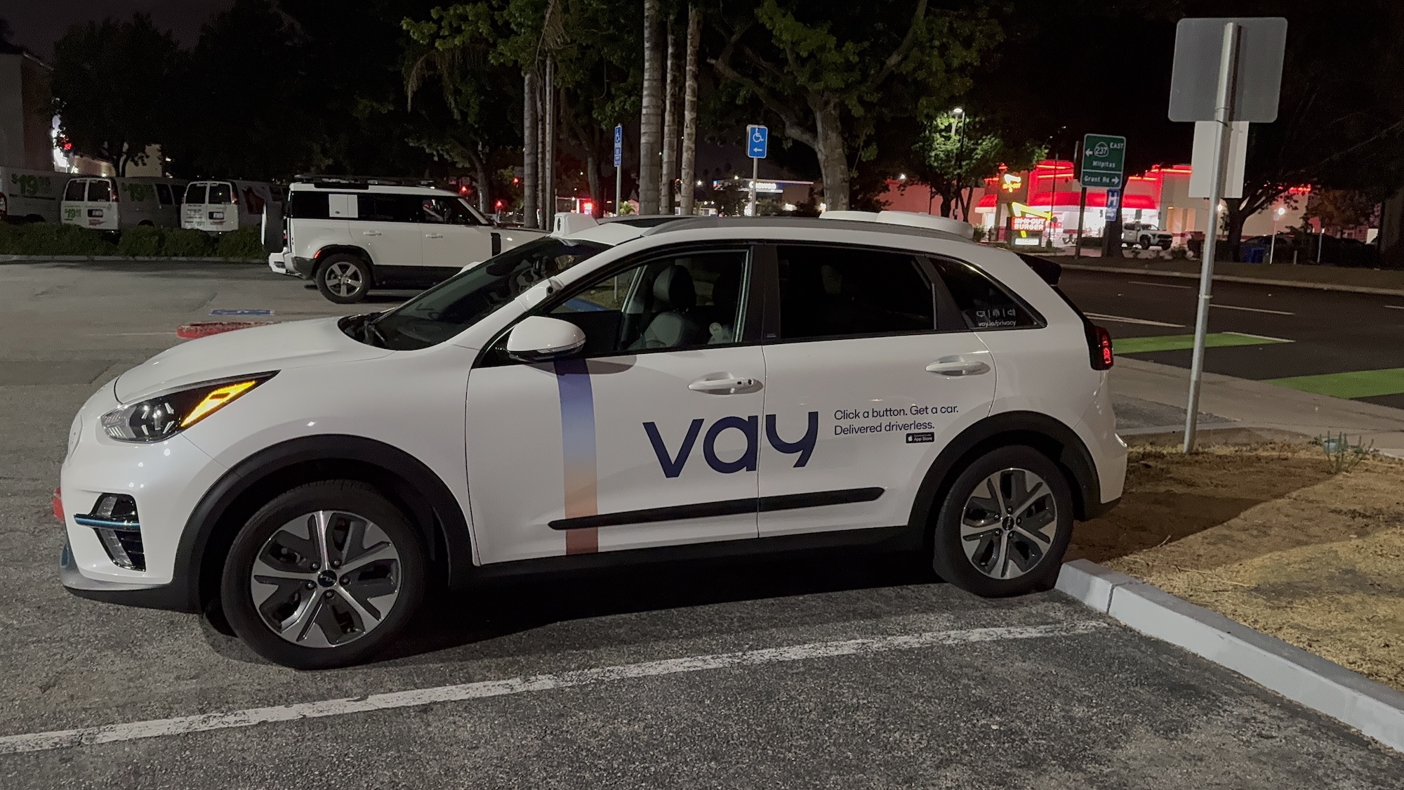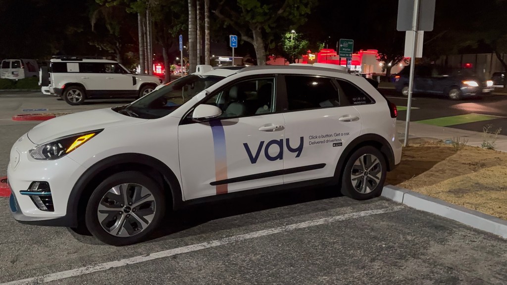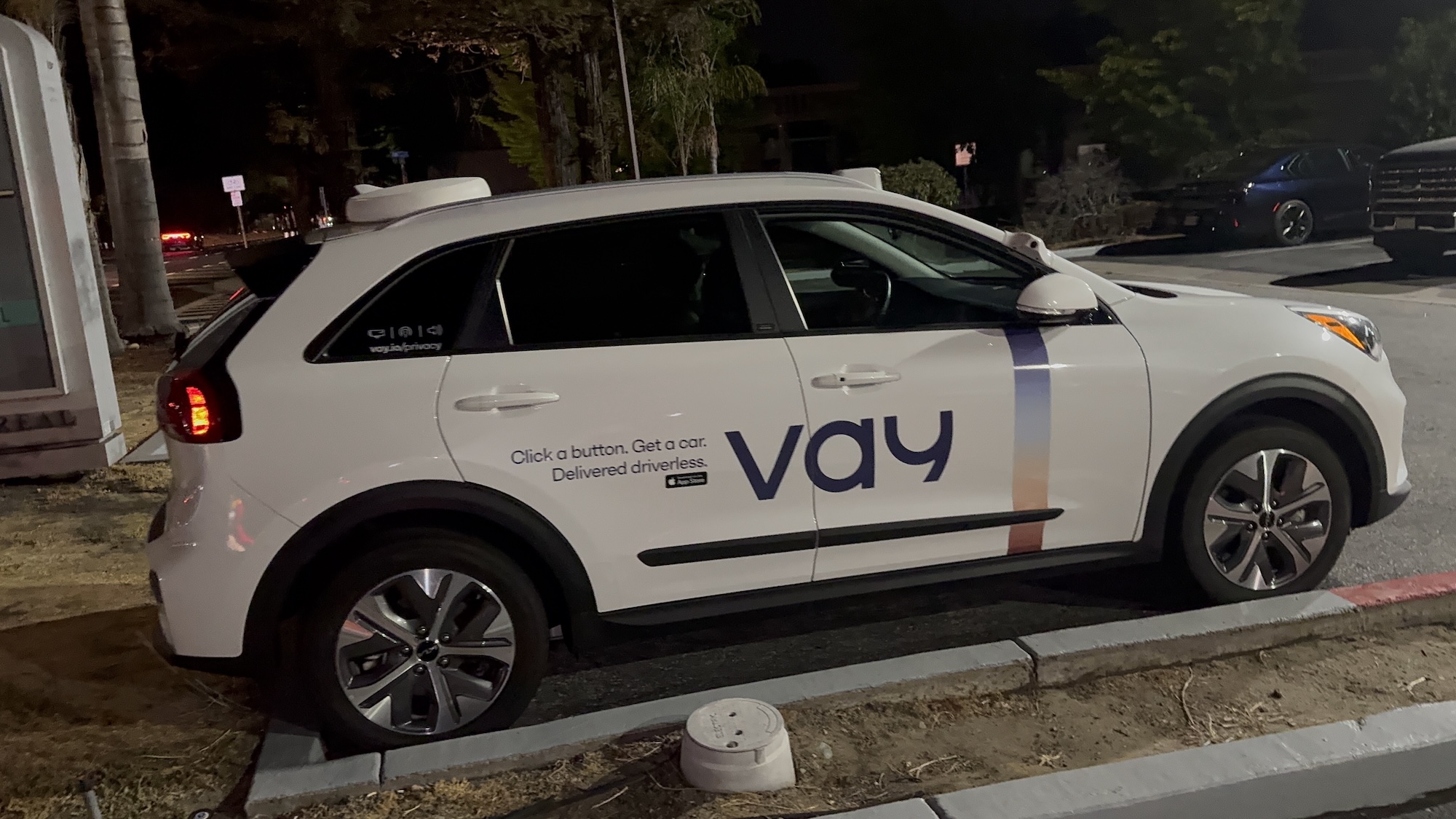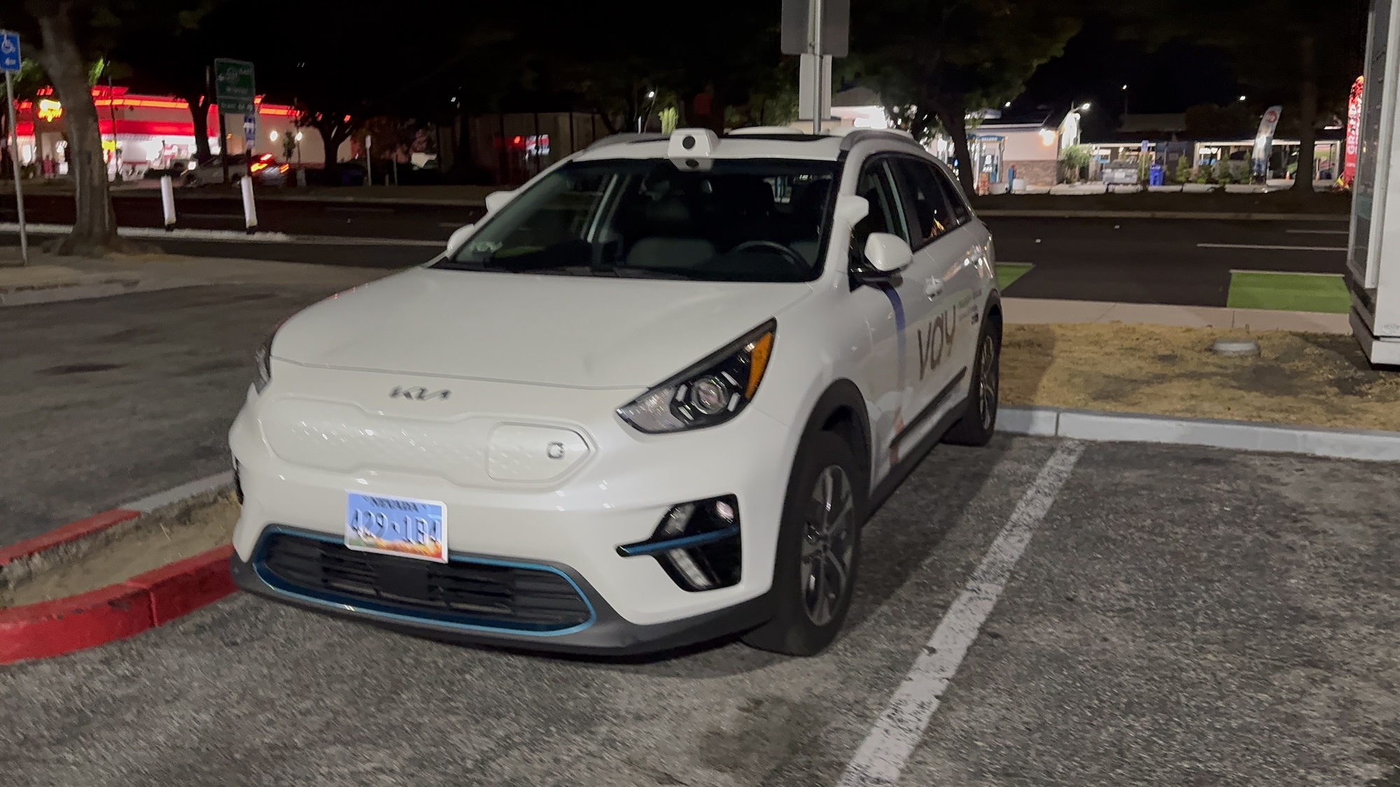 This Vay vehicle was spotted on August 11, 2025, at around 10:10 p.m. PDT in Mountain View in front of the Hotel Vue. Vay manufactures technology for remote-controlled vehicles. In this case, the base vehicle is a Kia with a Nevada license plate.