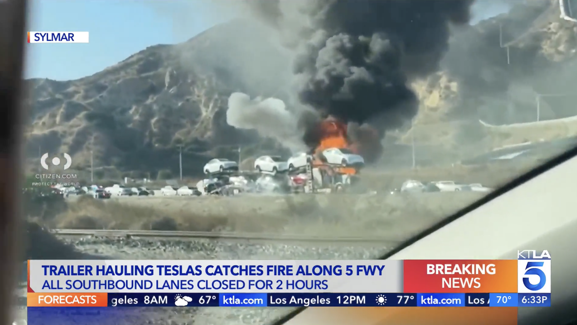 The reason for the complete closure was, as I could guess from the smoke rising between the mountains, probably a vehicle fire or bush fires. And indeed, it was a vehicle fire involving electric cars. But not in the way some people might think with schadenfreude. Because it wasn’t the seven Teslas on the car transporter that caught fire, but the diesel tractor unit. And unfortunately, the fire quickly spread to the Teslas, at least four of which were destroyed by the burning diesel truck.