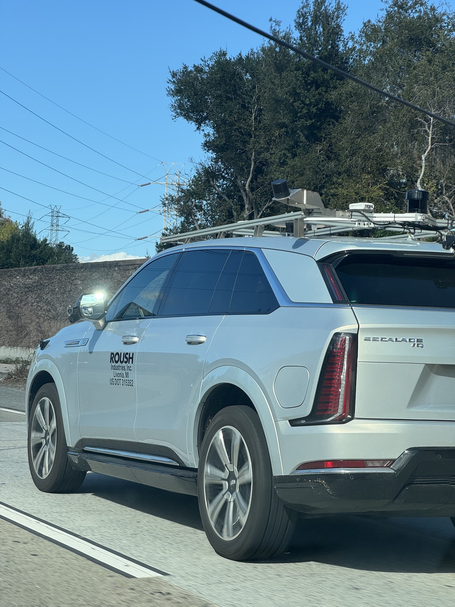 This mapping vehicle from Roush was spotted by Stefan Burghardt on March 2, 2026, on Highway 85, northbound at the Moffett Blvd exit.