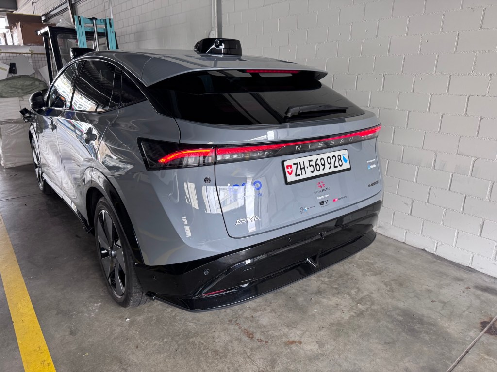 WeRide is currently conducting tests with three vehicles in Switzerland, one of 12 countries where the company is now operating. I had the opportunity to ride along in one of the vehicles for a lap in the test area around Regensdorf-Watt, a suburb of Zurich. Based on the Nissan Ariya, the vehicle is equipped with 11 cameras and 6 lidars, as well as computing units in the trunk.