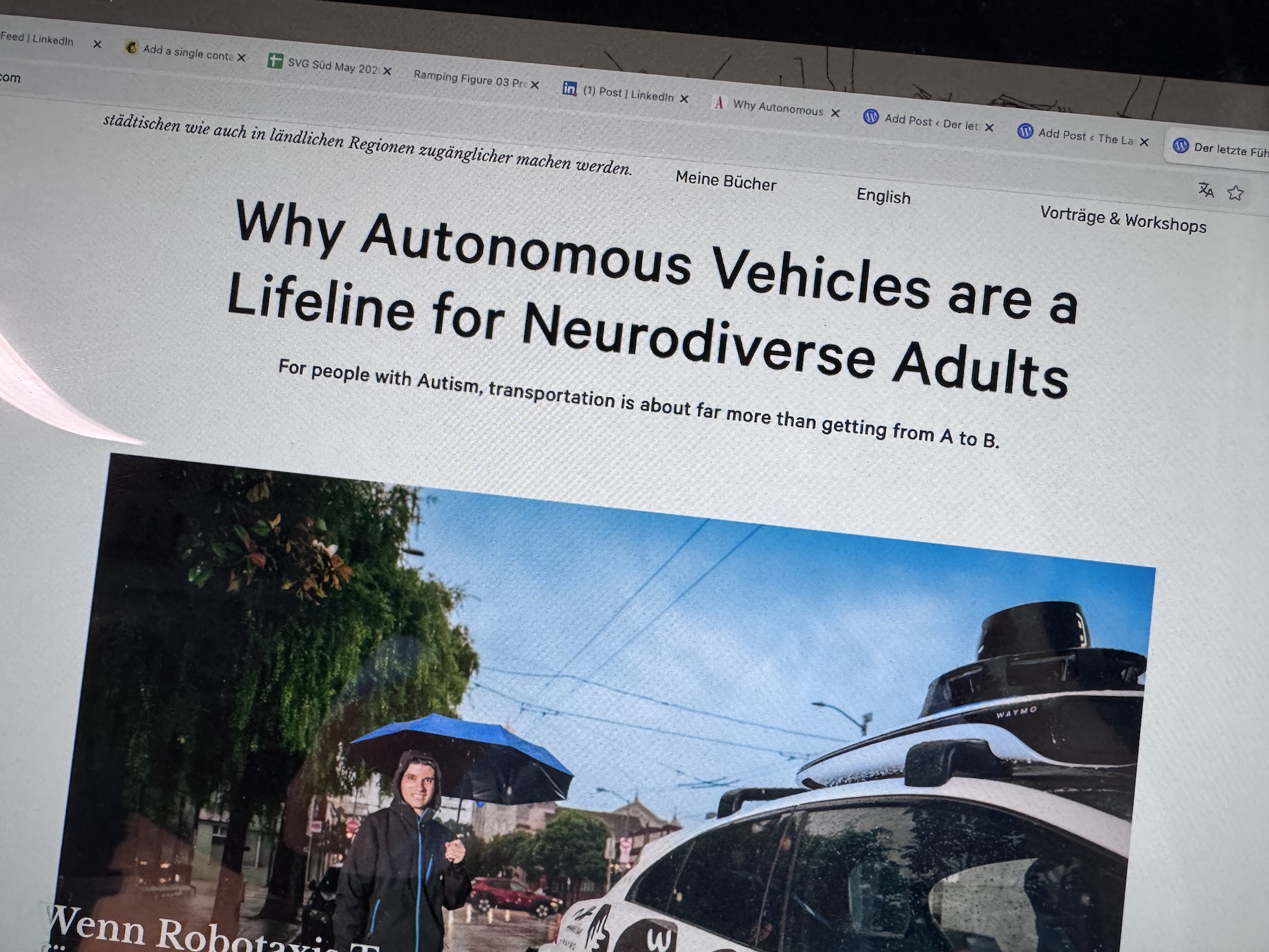 This also demonstrated that there is a whole segment of the population that currently has to forgo personal mobility for various reasons and for whom owning a car, a chauffeur service, or public transportation are not viable alternatives. I have already written several times on the advantages of robotaxi services like Waymo for women, who feel safer in Waymo vehicles for a variety of reasons and choose this alternative over taking a taxi, a ridesharing service, or public transportation.
