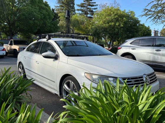 This unidentified Volkswagen with a lidar setup was spotted in the parking lot of Dinah’s Garden hotel in Palo Alto … More
