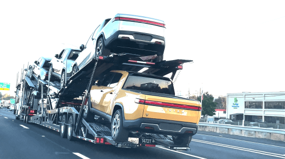 This auto transporter with 6 Rivian R1T pickups was spotted on northbound Highway 101 August 16th, 2022 at 7am PDT. … More