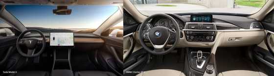 Cockpit Comparison Tesla Model 3 versus BMW 3 Series